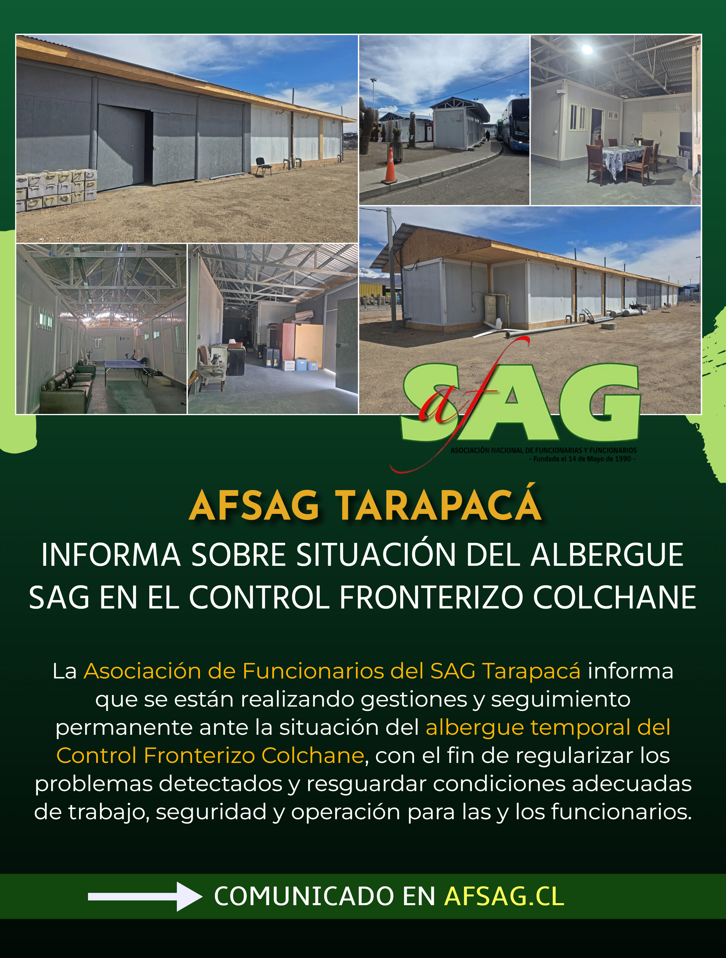 Asociación Nacional de Funcionarias y Funcionarios del Servicio Agrícola y GanaderoFONOS OFICINA AFSAG: 2 64 65 15 70 2 64 65 15 71 2 64 65 15 72 (contador) 2 64 65 15 73 ----- afsag@afsag.cl PASEO BULNES 120 OFICINA 81 - Santiago, Chile